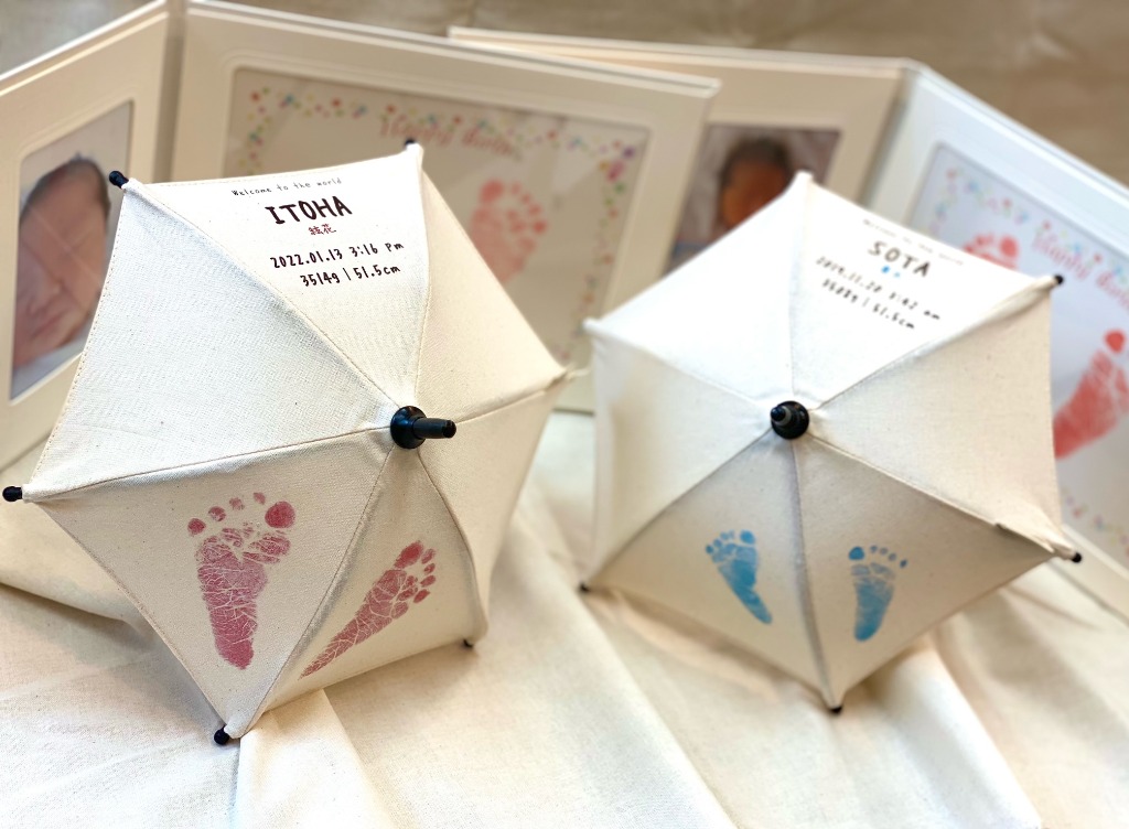 足形部分を使用し出生記録と共にミニ傘にしました!