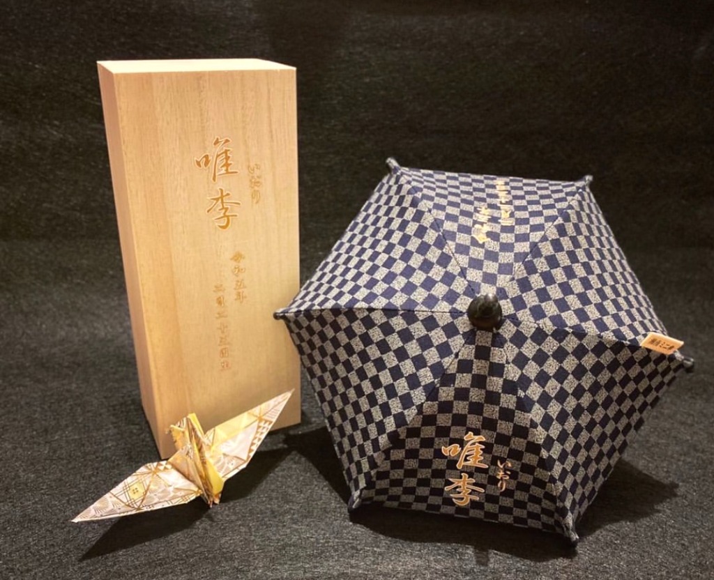 以前、古希祝いで紫色の市松格子模様の生地を使用したミニ傘も素敵でした♩